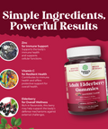 Elderberry Vitamin C and Zinc Gummies - Advanced Immune Booster Sambucus Elderberry Gummies for Adults - Super Antioxidants Supplement Immunity Vegan Halal Black Gummy