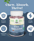 Extra Strength Zinc Gummies for Adults - Chewable Zinc Supplements for Women & Men for Energy & Immune Support - Vitamins & Mineral Supplements - 120 Chews
